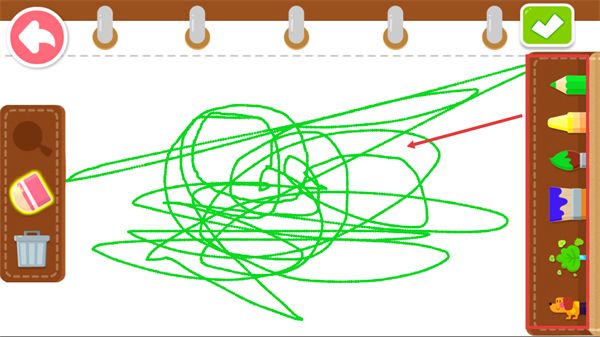 2、在涂鸦界面选绿色工具绘制线条,调整笔触粗细,让孩子尽情发挥想象力,创作独特图案。