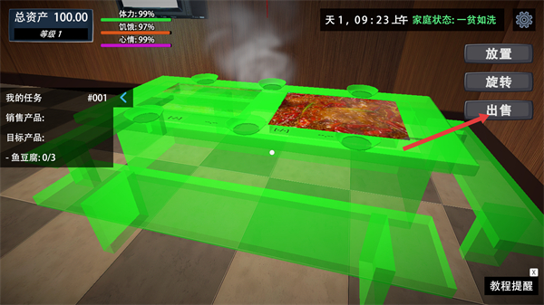 4、调整关东煮摊位位置,使用出售功能优化布局,获得初始资金。