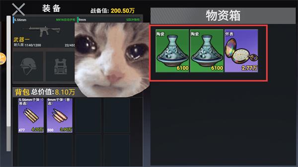 3、打开【物资箱】收集【陶瓷】【怀表】等道具,这些物品可提升战备值助力危险区域生存撤离。