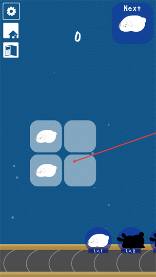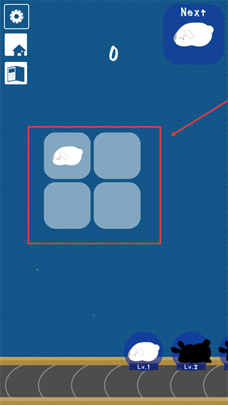 2、进入游戏后,4格区域会出现【Lv.1】的兔子,滑动屏幕旋转格子。