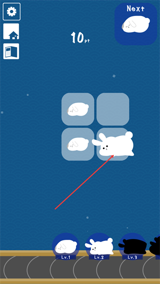 4、两个【Lv.1】的兔子合成后,会生成【Lv.2】的兔子,同时获得【10pt】的积分。