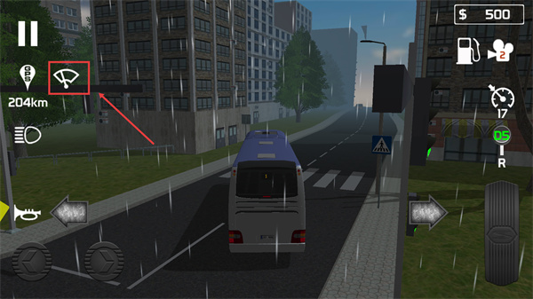 4、降雨天气下,点击左侧的【雨刷按钮】清理车窗,保持视野清晰,避免因视线受阻影响行驶安全。