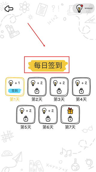 1、点击【每日签到】中的【签到】按钮,可领取第1天的【灯泡+1】奖励,连续签到可解锁后续更多资源。