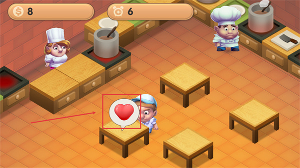 4、成功上菜后顾客会出现【红心标识】,代表满意度达标,可积累好评以提升餐厅评级。