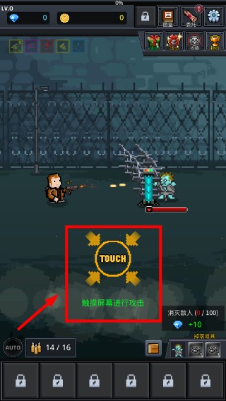 3、触摸屏幕进行攻击消灭僵尸,消灭敌人进度达【100】可推进进程获取奖励。