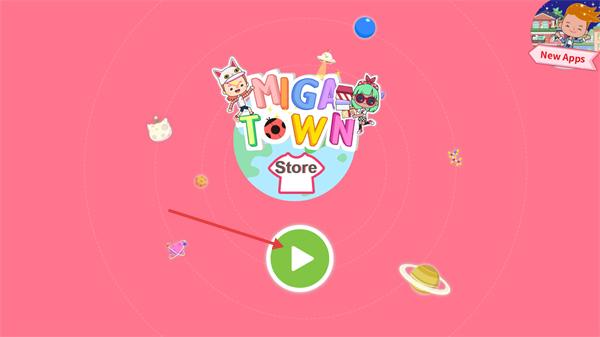 1、在游戏启动界面点击绿色播放键,进入【MIGATOWNStore】的互动场景。