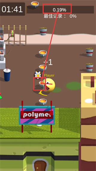 2、操控角色吞噬场景中的食物类物品,每次吞噬会提升进度(当前【0.19%】),同时刷新更多可吞噬的物品以积累进度。