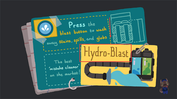 3、在污渍区域点击【喷水按钮】启动【Hydro-Blast】,清理指定脏污,完成“清理2处杂物”的关卡目标。