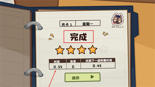 4、关卡完成后查看结算界面,当前获得【4颗星】,点击【继续】进入下一关。