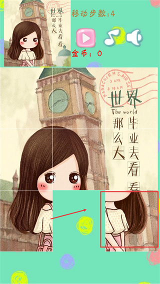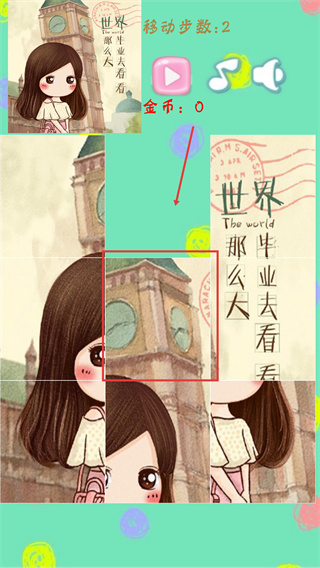 2、在拼图关卡中,移动大本钟板块至空缺位置,需合理规划步数。