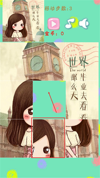 3、继续移动拼图板块,此时【移动步数:3】,逐步还原完整画面。