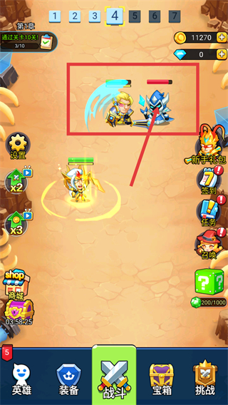3、通关后领取【累计通关】奖励,获取【新英雄】和【金币】资源,提升英雄等级,为后续战斗储备实力。