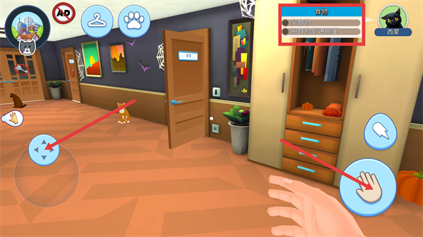 1、领取任务帮猫咪找猫粮,点击小手拾取后,找到西蒙的碗点击小手放猫粮。