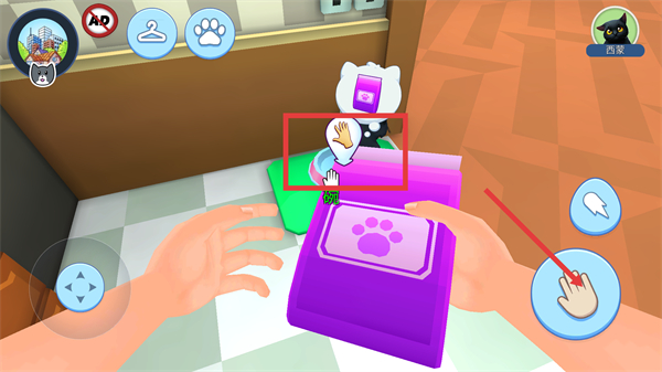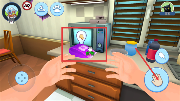 2、找到猫粮后点击小手拾取,帮助西蒙吃到食物。