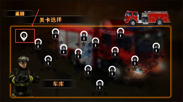 1、在关卡选择界面点击【1】号关卡开启首关,其余关卡需完成前置关卡解锁,可通过车库功能查看车辆配置。