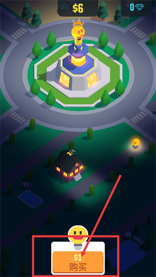 1、点击购买按钮雇佣灯泡小精灵,加速照亮黑暗区域,提升小灯泡获取效率以推进游戏进度。