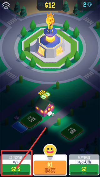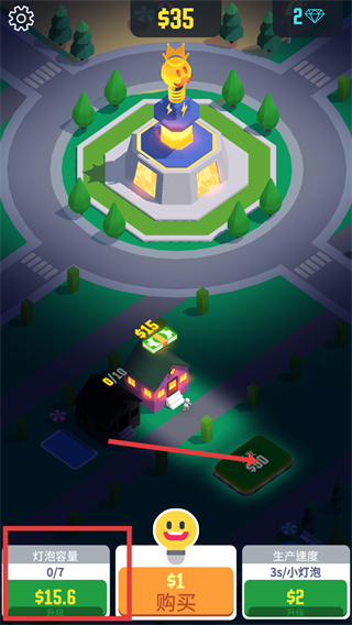 3、消耗金币升级灯泡容量,提升小灯泡存储上限,让每次照明收益更稳定便于后续操作。
