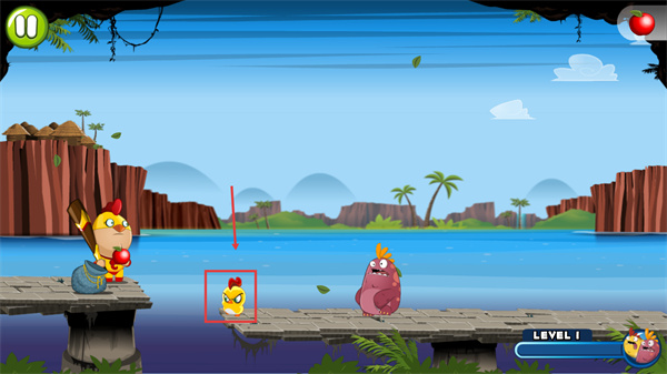 3、操控小公鸡角色移动至合适位置,并保护它。