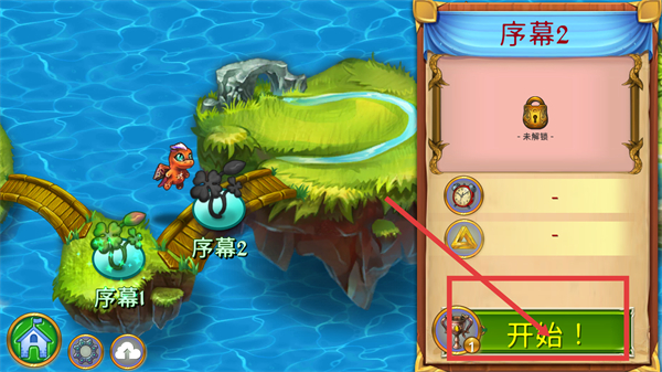 1、进入游戏主界面,点击开始按钮进入【序幕】关卡,完成当前关卡可解锁后续等更多挑战内容。